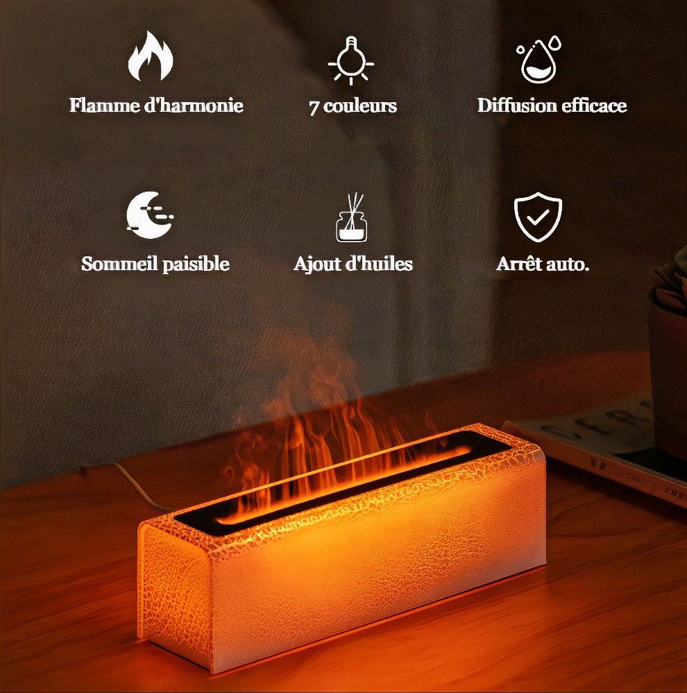 Notre diffuseur s'intègre parfaitement à votre décoration et diffuse une lumière douce et raffinée, créant une ambiance relaxante et chaleureuse.